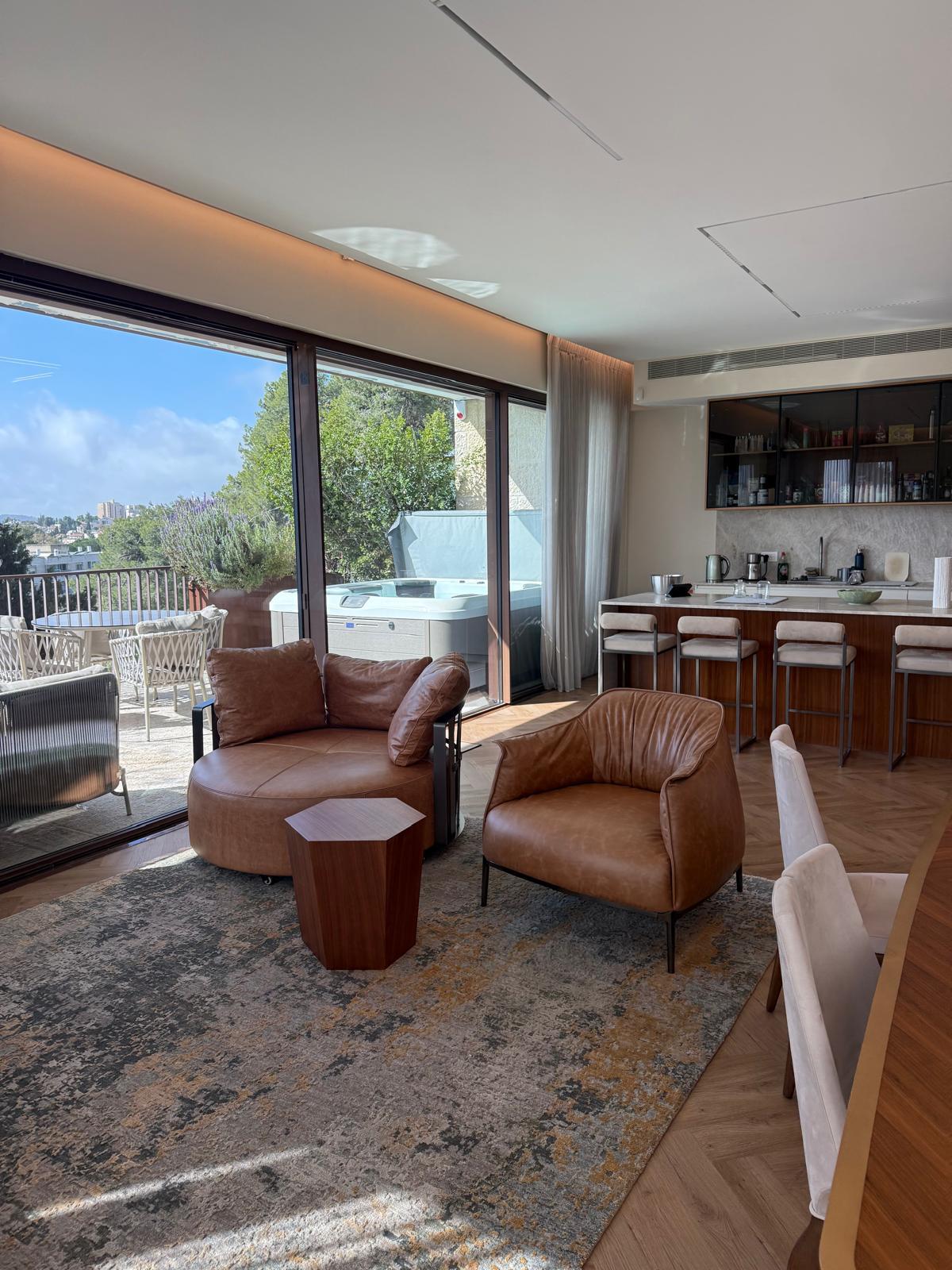 * 70 sqm wrap – around balcony with a hot tub ; outdoor BBQ